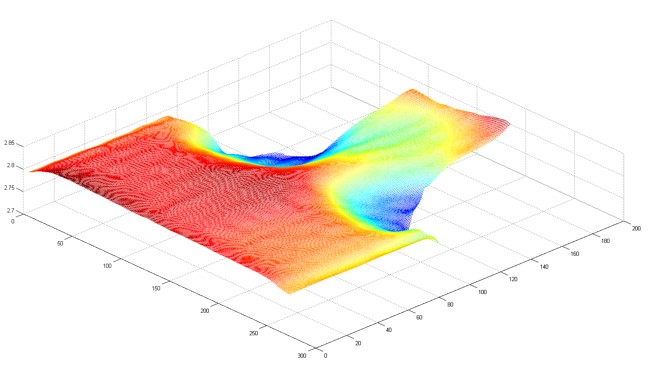 Figure 1: A reconstruction of the smoothed surface plot across a butt weld measured by CMM and probe [4]